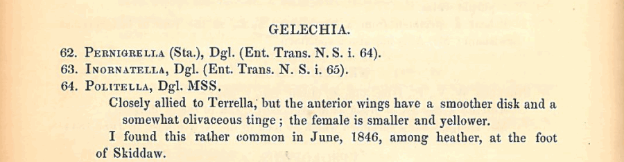 - Gelechia politella Stainton, 1851 [Originalkombination]