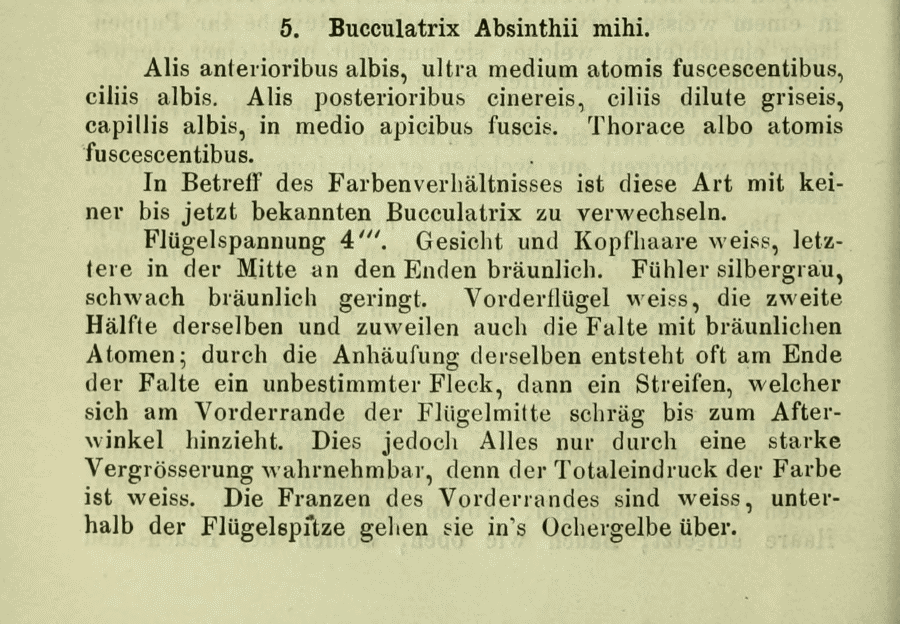 - Petry, A. (1912): Ueber die deutschen an Artemisia lebenden Arten der Gattung Bucculatrix Z. nebst Beschreibung einer neuen Art. — Deutsche entomologische Zeitschrift „Iris“ 26 (2): 111-115. Dresden.