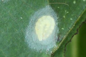 Die Minen an Kreuzdorn (Rhamnus cathartica) bzw. Faulbaum (Frangula alnus) sind sehr charakteristisch: Die Raupe frisst zuerst einen spiraligen, dicht aneinanderliegenden Gang von innen nach außen. Der dicht gewundene Innenteil mit etwa 3 mm Durchmesser erscheint bei flüchtigem Hinsehen als unstrukturierter Fleck, besteht aber aus etwa 5 - 7 Gangumläufen. Zuletzt wird der Gang ein kurzes Stück tangential fortgesetzt, bald darauf verlässt die Raupe die Mine. Die Larven häuten sich nach dem Verlassen der Mine unter einem glatten Kokon, erzeugen dann zuerst Fenster-, später Lochfraß, frei am Blatt sitzend. Sie verpuppen sich in einem gerippten Kokon
