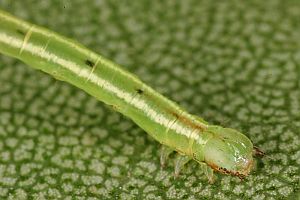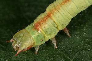 1: Deutschland, Niedersachsen, Sehnde-Ilten, Siedlungsgebiet, Raupe leg. 29. August 2005 unter einer Birke, 10. März 2006 (Foto: Thomas Fähnrich), cult. zum Falter & det. Thomas FähnrichForum