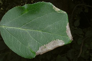 2, Blattumschläge an Apfelbaumblatt (Malus sp.): Deutschland, Sachsen, Doberschütz, Waldrand, 4. September 2008 (Foto: Heidrun Melzer), det. Heidrun Melzer [Forum]
