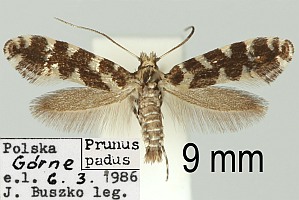 1: Polen, Łaziska Górne (Ober-Lazik), leg. Raupe an Traubenkirsche (Prunus padus), e.p. 6. März 1986, leg., cult. & det. J. Buszko, coll. ZSM (Zoologische Staatssammlung München)