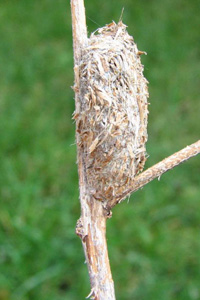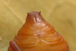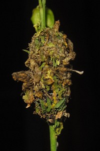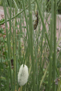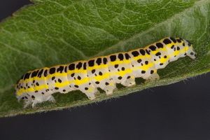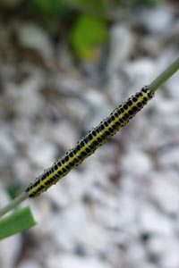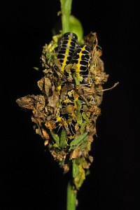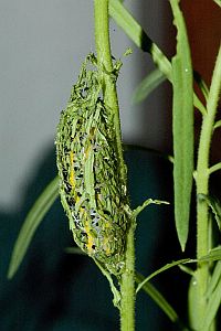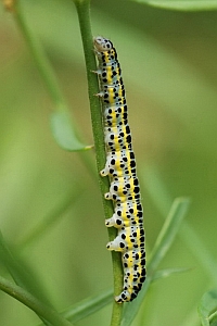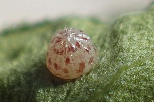 Die Eier werden (hier am Oberrhein?) scheinbar bevorzugt im unteren Bereich der Leinkrautpflanzen (Linaria vulgaris) abgelegt: Deutschland, Rheinland-Pfalz, Südpfalz, Landau, Wegrand, 3. Mai 2020 (Freilandfoto: Sascha Guckes) [Forum]