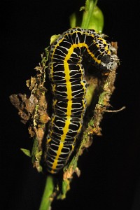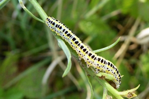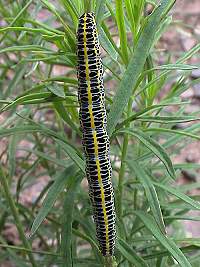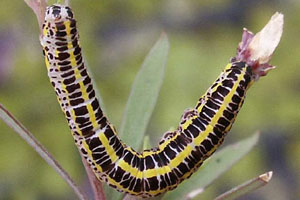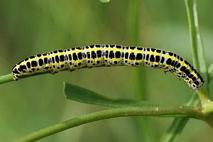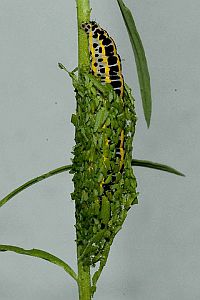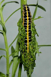 Mit großem Abstand wichtigste Eiblage- und Raupennahrungspflanze ist das Echte oder Gewöhnliche Leinkraut (Linaria vulgaris). Steiner (1997: 225) kann aus Baden-Württemberg ältere Einzelnachweise auch von Linaria repens und Linaria alpina in Gärten, sowie von Kickxia spuria vom Hohentwiel anführen. Neben vielen Angaben zu Linaria vulgaris konnten auch durch Forumsteilnehmerinnen Linaria alpina und Linaria repens erneut für Gärten bzw. an verwilderten Pflanzen bestätigt werden (s.o.).