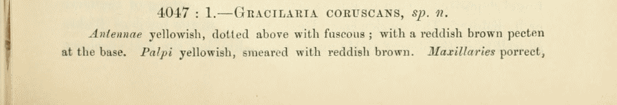 - Gracilaria coruscans Walsingham, 1907 [Originalkombination]