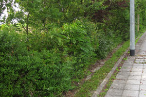 2: Hecke mit Liguster (Ligustrum spec.) und Esche (Fraxinus excelsior): Deutschland, Niedersachsen, Bad Nenndorf, 60 m, Bahnhof, 23. Mai 2017 (Foto: Tina Schulz)