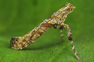 6-7: Kokon und Exuvie, Deutschland, Niedersachsen, Umgebung Steinmühle, gegenüber Dölme, ca. 120 m, in Blatttüte an Esche (Fraxinus excelsior), 7. Juli 2013, e.p. 26. Juli 2013 (leg., cult., det. & Studiofotos: Tina Schulz)Forum