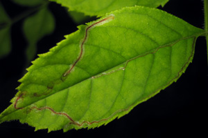 1-3: Befallsbild, Anfangsminen, Blattrollen und -kegel, Deutschland, Sachsen, Leipzig, Flussaue an der Weißen Elster, an Stockausschlägen von Fraxinus excelsior, 18. August 2008 (Studiofotos: Heidrun Melzer), leg., cult. & det.Forum