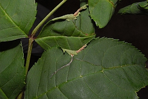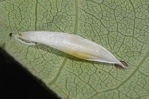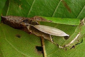 6-7: Kokon und Exuvie, Deutschland, Niedersachsen, Umgebung Steinmühle, gegenüber Dölme, ca. 120 m, in Blatttüte an Esche (Fraxinus excelsior), 7. Juli 2013, e.p. 26. Juli 2013 (leg., cult., det. & Studiofotos: Tina Schulz)Forum