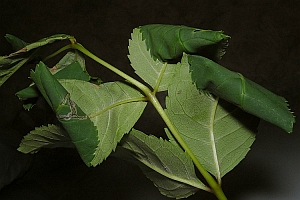 1-3: Befallsbild, Anfangsminen, Blattrollen und -kegel, Deutschland, Sachsen, Leipzig, Flussaue an der Weißen Elster, an Stockausschlägen von Fraxinus excelsior, 18. August 2008 (Studiofotos: Heidrun Melzer), leg., cult. & det.Forum