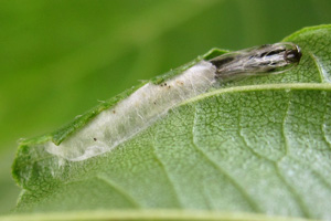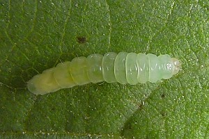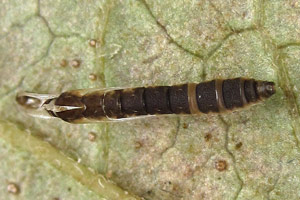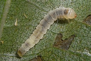 2: verpuppungsreif, Deutschland, Sachsen, Dübener Heide, Umgebung von Doberschütz, an Schwarzerle (Alnus glutinosa), 12. August 2008 (Foto: Heidrun Melzer), leg., cult & det. Heidrun Melzer