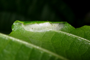 1-2: mit Raupe besetzte Blattumschläge, Deutschland, Sachsen, Dübener Heide, Umgebung von Doberschütz, an Schwarzerle (Alnus glutinosa), 15. Juli 2008 (Freilandfotos: Heidrun Melzer), leg., cult & det. Heidrun MelzerForum
