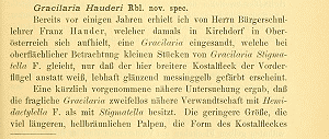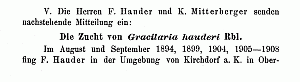 - Prins, J. de, Prins, W. de & M. Jacobs (2005): Caloptilia hauderi, a new species for the Belgian fauna (Lepidoptera: Gracillariidae). — Phegea 33 (2): 53-54 [PDF auf phegea.org].