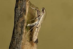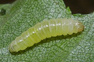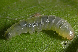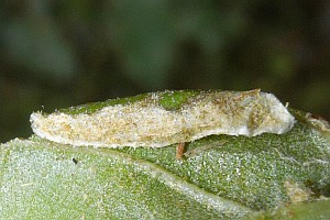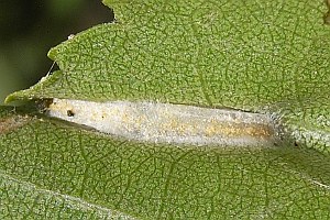 Die Raupe legt ihre Minen in Blättern von Betula pendula (Hänge-Birke) an, bladmineerders.nl [Artseite auf bladmineerders.nl] bestätigt diese klare Vorliebe, nennt als gelegentliche Nahrungspflanze aber auch Betula pubescens, die Moor-Birke. Bei gracillariidae.net [Artseite auf gracillariidae.net] kommen noch Betula platyphylla (Japanische Birke) und - aus Russland - auch Alnus sp. (Erle) hinzu - vermutlich ist dies aber eine Ausnahmeerscheinung.