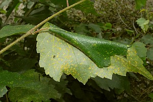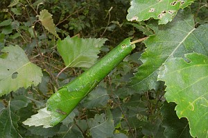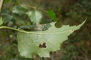 Entscheidend für die Artansprache (gegenüber Caloptilia betulicola) ist die Form der letzten Raupenwohnung: Caloptilia populetorum fertigt eine Blattlängsrolle an.
