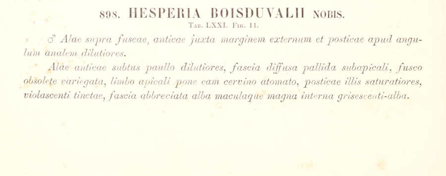 - Hesperia boisduvalii Felder & Felder, [1867] [Originalkombination]