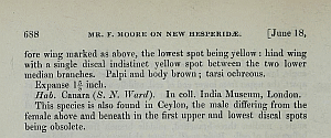 - Erstbeschreibung: Moore, F. (1878): Descriptions of new Asiatic Hesperidae. — Proceedings of the Scientific Meetings of the Zoological Society of London for the Year 1878 (3): 686-695, pl. XLV.
