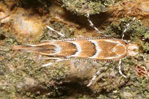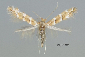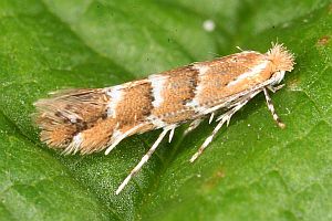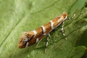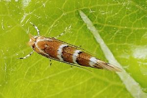 Cameraria ohridella, welche den Phyllonorycter-Arten sehr nahe verwandt ist, erkennt man "daran, dass die weißen Binden nur gegen außen schwarz begrenzt sind. Bei den Phyllonorycter-Arten ist die schwarze Begrenzung der weißen Binden entweder nur innen, auf beiden Seiten oder sie fehlt ganz." [Anmerkung Rudolf Bryner, CH]
