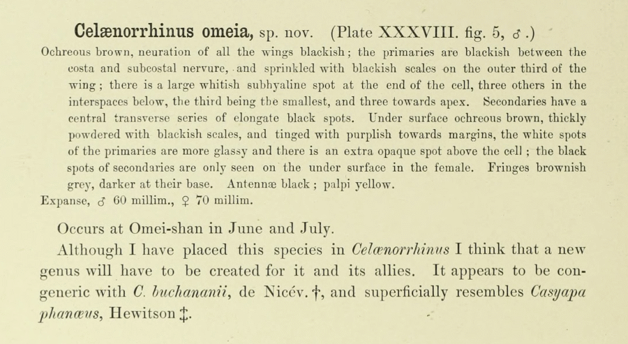 - Celaenorrhinus omeia Leech, 1893 [Originalkombination]