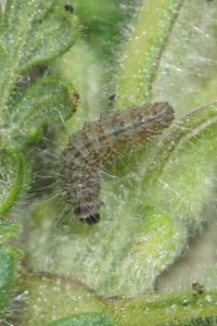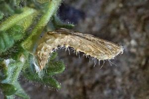 Die Art scheint auf den Trauben-Gamander (Teucrium botrys) spezialisiert zu sein, dessen Blüten und junge Früchte von der Raupe gefressen werden. Teilweise abgebissene Blüten- und Fruchtstiele mit dadurch anwelkenden Blüten- und Fruchtständen sollten die Anwesenheit der Raupe verraten.