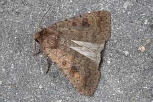 • Orangefarbener Fleck/Streif am Außenrand der Nierenmakel (arttypisch; das hat keine Hoplodrina) [Text: Axel Steiner]