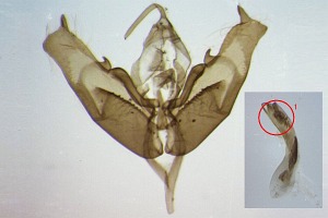 1-2: (2: Aedeagus), ♂, Portugal, Algarve, Caldas de Monchique, 37.285° N 8.564° W, aufgelichteter Eichenbuschwald im hügeligen Gelände, ca. 300 m, 13. April 2010, am Licht (leg., gen. det. & Fotos: Hartmuth Strutzberg, Beleg B13390)Forum