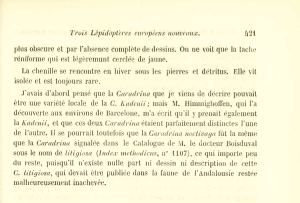 - Erstbeschreibung: Bellier de la Chavignerie (1863): Description de trois lépidoptères européens nouveaux. — Annales de la Société entomologique de France. Quatrième série 3: 419-422. Paris.