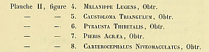 - Erstbeschreibung: Oberthür, C. (1886): Espèces nouvelles de lepidoptères du Thibet. — Études d'entomologie 11: [V]-XII, 13-38, pl. I-VII.