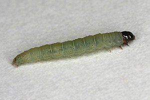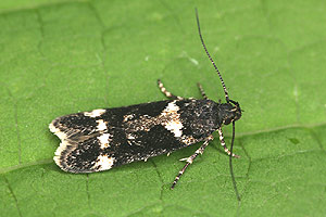 Stainton (1867: 61) berichtete aus Cornwall (Großbritannien): „Besucht man gegen Ende Mai eine Gegend an der Seeküste, wo Silene maritima reichlich wächst, so wird bei aufmerksamer Betrachtung dieser Pflanzen wahrscheinlich an mancher ein welkes Aussehen der Blätter der Endtriebe auffallen. Oeffnet man einen solchen Trieb und findet ein grünes Räupchen mit schwarzem Kopf und röthlichbraunem zweiten Segment, so ist die Wahrscheinlichkeit sehr gross, dass man die Raupe der Gelechia leucomelanella vor sich habe. […] Die Raupe nährt sich von Silene maritima jedenfalls aber auch von einer anderen binnenländischen Silene-art, da Professor Zeller den Schmetterling in einem Gehölz bei Glogau nicht selten im Juli gefangen hat“. Das Problem: Caryocolum leucomelanella kommt in England nicht vor ...