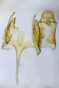 2: ♂, Deutschland, Sachsen, Oberlausitz, Königsbrück, ca. 160-180 m, ehemaliges militärisches Übungsgelände, Lichtfang am 11. August 2005 (Präparation: Friedmar Graf, Einbettung & Mikro-Foto: Peter Buchner), det. Peter Huemer 2011Forum