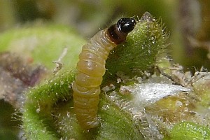 1: Deutschland, Sachsen, Oberlausitz, Neustädter Heide, ehemalige Ortslage Tschelln, 117 m, Raupenfund im Mai 2010 an Cerastium holosteoides oder Minuartia verna, e.l. 22. Juni 2010 (leg., cult., gen.det. & Foto: Friedmar Graf)Forum