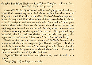 - Stainton, H. T. (1867): The natural history of the Tineina 10: I-XI, 1-304, Gelechia pl. IX-XVI. London (John van Voorst) – Paris (Deyrolle) – Berlin (E. S. Mittler und Sohn). — Digitalisat auf archive.org: [90-101], [pl. X fig. 1].
