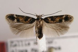 "HOLOTYPUS ♂: Gallia mer. or., Alpes Maritimes, Col de Vence 1050 m, 28.V.1988 el., leg. Huemer & Tarmann, Raupe in Galle an Cerastium ll.iv.l988 (coll. Tiroler Landesmuseum Ferdinandeum, Innsbruck).