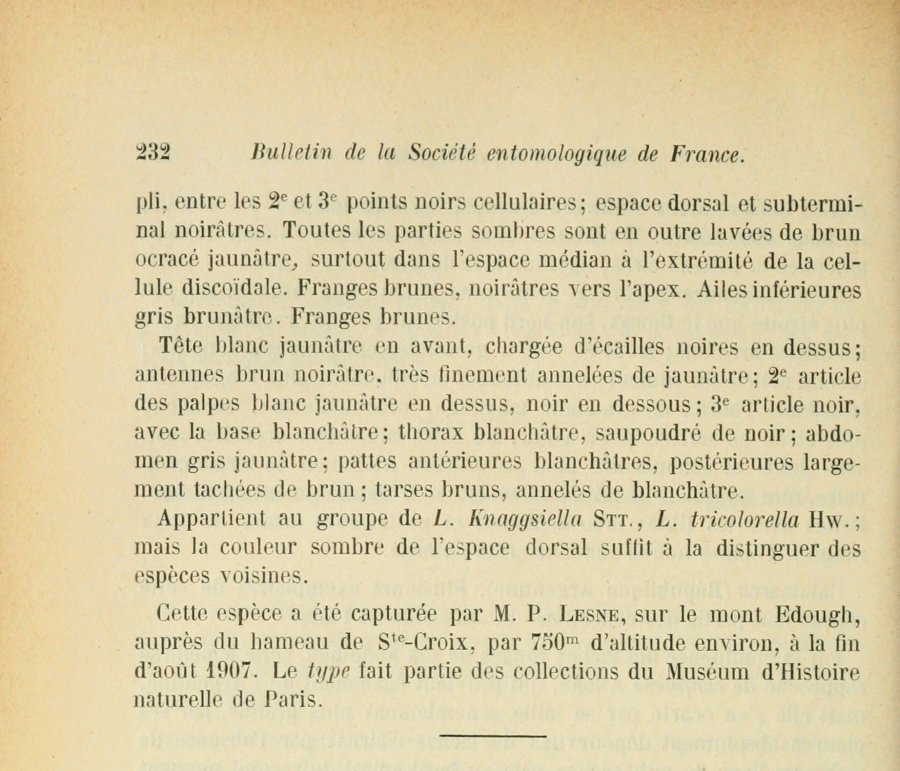 - Erstbeschreibung: Chrétien, P. (1908): Description d'un Microlépidoptère nouveau d'Algérie. — Bulletin de la Société entomologique de France 1908: 231-232.