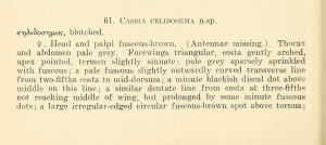 - Original description: Turner, A. J. (1947): New Australian Species of Boarmiadae (Lepidoptera). — Proceedings of the Royal Society of Queensland 58: 71-112. Brisbane (A. H. Tucker).