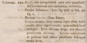 Die Angabe „D. F.“ von Fabricius (1793: 44) ist wohl ein Druckfehler; richtig wäre „P. F.“ [= Papilio Festivi] gewesen.