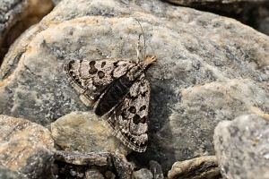 Schmid (2019: 774) kann aus eigener Erfahrung aus den Alpen berichten: "Laut Slamka (2006) ist die Raupennährpflanze Alpen-Leinkraut (Silene alpestris), das aber nur in den Ostalpen vorkommt. In den Schweizer Alpen wurde die Raupe (2-5) auf Gegenblättrigem Steinbrech (Saxifraga oppositifolia), in Polstern von Langstieligem Hornkraut (Cerastium pedunculatum), auf Blattlosem Steinbrech (Saxifraga aphylla) und auf Kalk-Polsternelke (Silene acaulis) fressend gefunden."