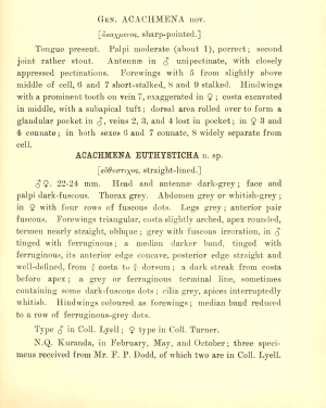 - Acachmena euthysticha Turner, 1911 [original combination]