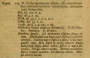 Nupta (lat.) die Braut. Siehe Anmerkung zu Catocala sponsa. (Text: Axel Steiner)
