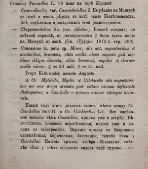 - Erstbeschreibung: Алфераки, С. (1876): Чешуекрылыя Сѣвернаго Кавказа. — Труды Русского энтомологического общества 10: 3-34.