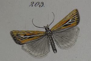 1-2: Herrich-Schäffer ([1850]: Tineides pl. 29 fig. 203) [reproduziert von Jürgen Rodeland nach Band im Staatlichen Museum für Naturkunde Karlsruhe]