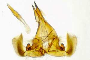 3: Genitalpräparat eines im Forumsbeitrag abgebildeten ♂, Österreich, Steiermark, Graz, St. Peter, ca. 380 m, Garten, Mischwaldrand, am Licht, 8. August 2018 (präp., det. & Foto: Horst Pichler)Forum