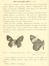 • Erstbeschreibung: Mabille, P. (1889): Diagnoses de lépidoptères nouveaux. — Le Naturaliste, 2e Série 3 (44): 14. — Digitalisat auf biodiversitylibrary.org: [14]