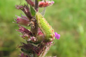 - [Fabaceae:] Calicotome spinosa [= Calycotome spinosa] (Stacheliger Dornginster) [Eiablage-Beobachtung E. Rennwald im Ésterel in Südost-Frankreich]