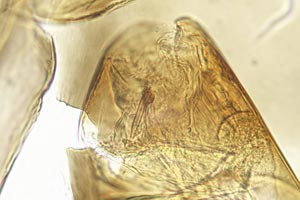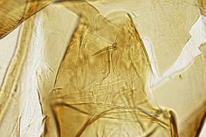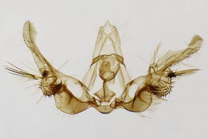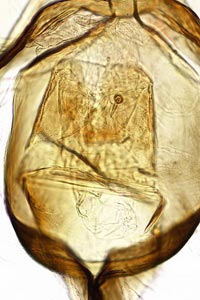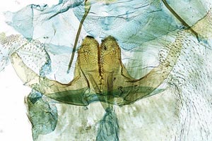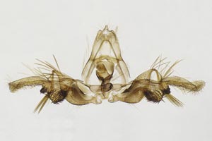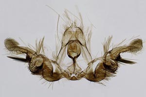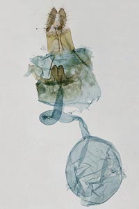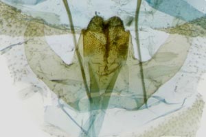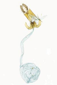 Anmerkung: Hartmuth Strutzberg schreibt zu GU2590 "Das Sterigma passt gut zu der Präparation von Hans-Peter Deuring. Im Razowski (2001) und den übrigen Abbildungen im Lepiwiki und auch bei [Mothdissection, Zugriff am 15.12.2024] erscheint das Sterigma schmaler. Ist das echt oder ein Präparationsartefakt?"