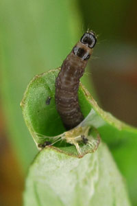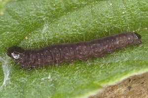 Schon Kennel (1916: 413) hatte zusammengetragen: "Die Raupe ist wie die von Urticana, vielleicht etwas dunkler. Sie lebt in mehreren Generationen den Sommer hindurch polyphag zwischen versponnenen Blättern und Blüten von Betula, Caltha palustris, Mentha aquatica, Matricaria, Urtica, Conyza squarrosa, Lamium, Cirsium, Anthriscus, Spiraea ulmaria, Rubus idaeus, Chrysanthemum, Ranunculus usw."