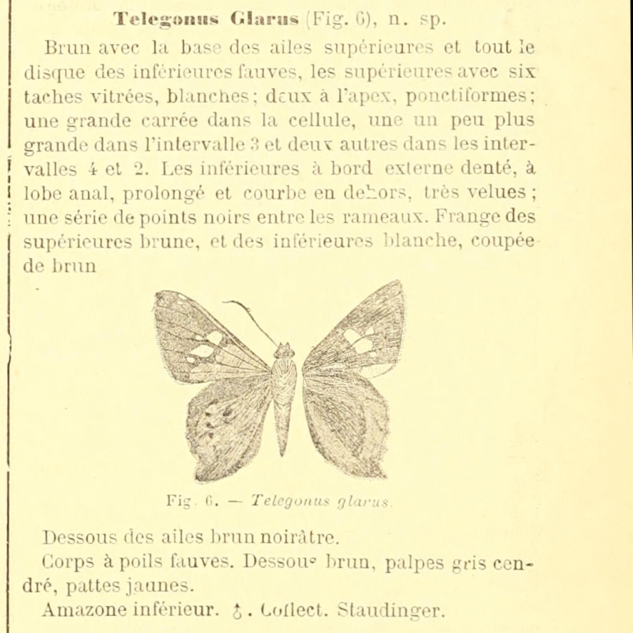 - Telegonus glarus Mabille, 1888 [Originalkombination]