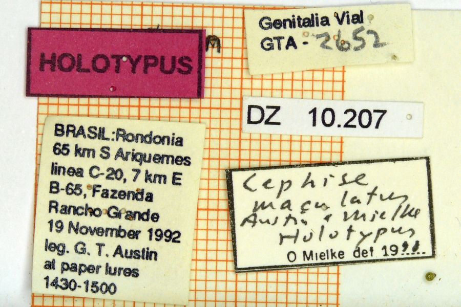 - Erstbeschreibung: Austin, G. T. & O. H. H. Mielke (2000): Hesperiidae of Rondônia, Brazil: Cephise Evans (Pyrginae), with descriptions of new species from Mexico and Brazil. — Revista Brasileira de Zoologia 17 (3): 757-788. [PDF auf pdfs.semanticscholar.org]