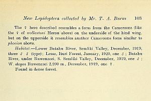 - Erstbeschreibung: Joicey, J. J. & G. Talbot (1921): New Lepidoptera collected by Mr. T. A. Barns, in East Central Africa. — The Bulletin of the Hill Museum 1 (1): 44-118, pl. V-XVI.