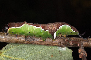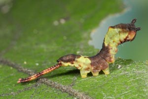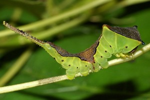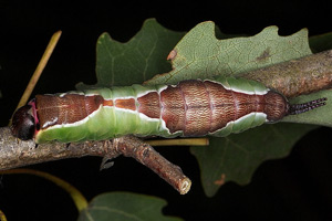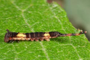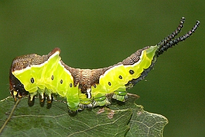 Charakteristisch für die (ausgewachsene) Raupe von Cerura erminea ist der mittige, seitliche weiße Strich quer zur Körperlängsachse. [nach einem Beitrag von Daniel Bartsch]